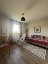 À l'étage, vous trouverez trois chambres, une salle de bains avec baignoire, un WC et des placards.